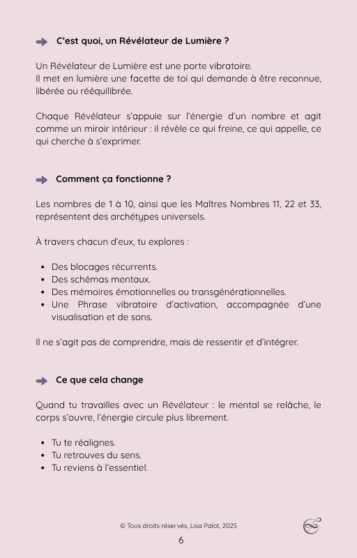 Les Révélateurs de Lumière sont des portes vibratoires inspirées des archétypes des nombres, conçues comme des invitations à explorer certaines dimensions de ton chemin intérieur.